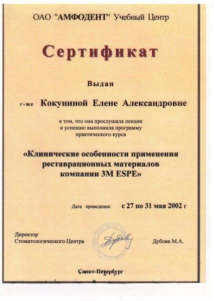 Имею сертификаты Учебного Центра Амфодент ( Санкт-Петербург):
