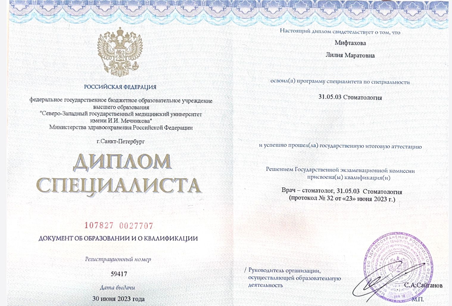 Северо-Западный государственный медицинский университет имени И.И. Мечникова